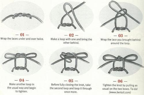 Now, most people tie a simple bow knot and leave it at that, retying the knot as they need, or tying an extra square knot to keep the bow knot in place. This, of course, makes untying the knot a hassle.