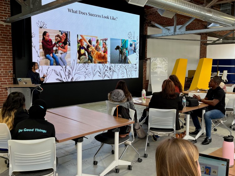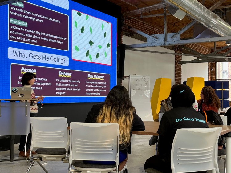 Last Monday, April 4th, the NOVA Lab classes ventured beyond the walls of room 121 to visit Fluxspace, a collaborative learning space located in Norristown. For most of the group, it was our second time at Fluxspace, as we had gone back in November of 2021; during that trip, we gave presentations on design sprints we had completed in a matter of weeks. This time, the students were tasked with presenting the projects that we have been working on for months. Writing in a blog post following the field trip, Ava Bellino described how this visit was “more real” because the presentation “mattered so much more this time around.”