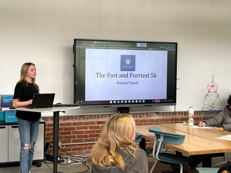 Charging the room with the innovative spirit was guest speaker Jordan Deane, a graduate of Perkiomen Valley who started his own business, a fitness studio called Cut Loose, with his fiancee, Emily. Charismatic and honest, Jordan quickly earned the admiration of his audience of NOVA Lab students. Following his presentation, the couple offered personal advice to help students build up their own brands and advertise on social media. Later, both Jordan and Emily would serve as panelists during presentations, providing feedback that student Casey Sitron described as “invigorating.”
