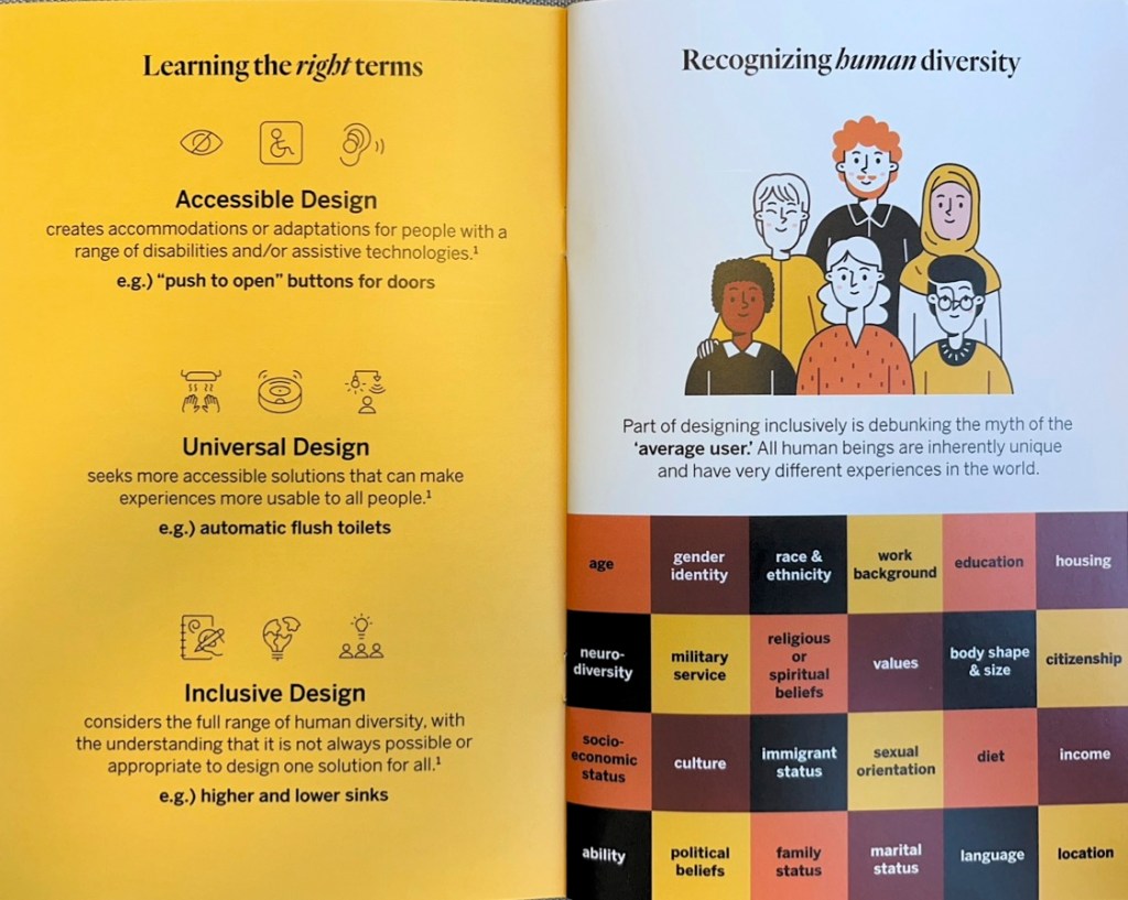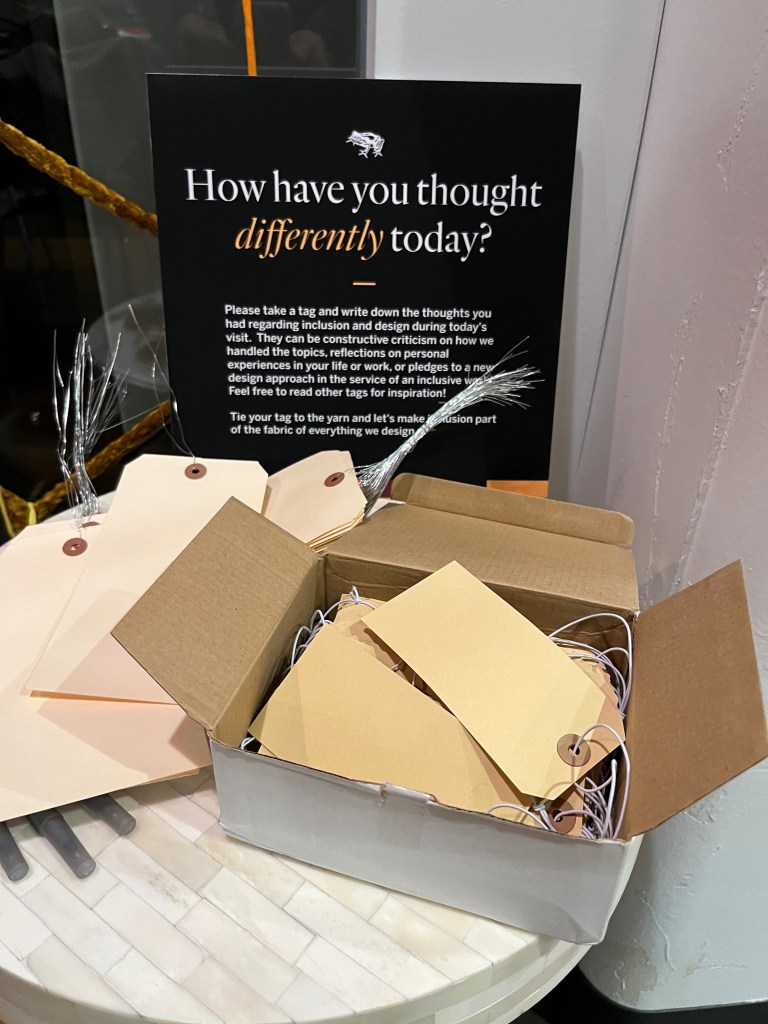 So what could we have done better? How might we–or how might we yet–design a learning moment that focuses less on lecture and more emphatically on experience, the greatest teacher of all? I found the answer this very evening in the Curtis Building at 6th and Walnut Streets in Philadelphia, courtesy of frog design and the “Design Philadelphia” festival. A small, but clearly empathetically designed experience called “Designing for Inclusion.”