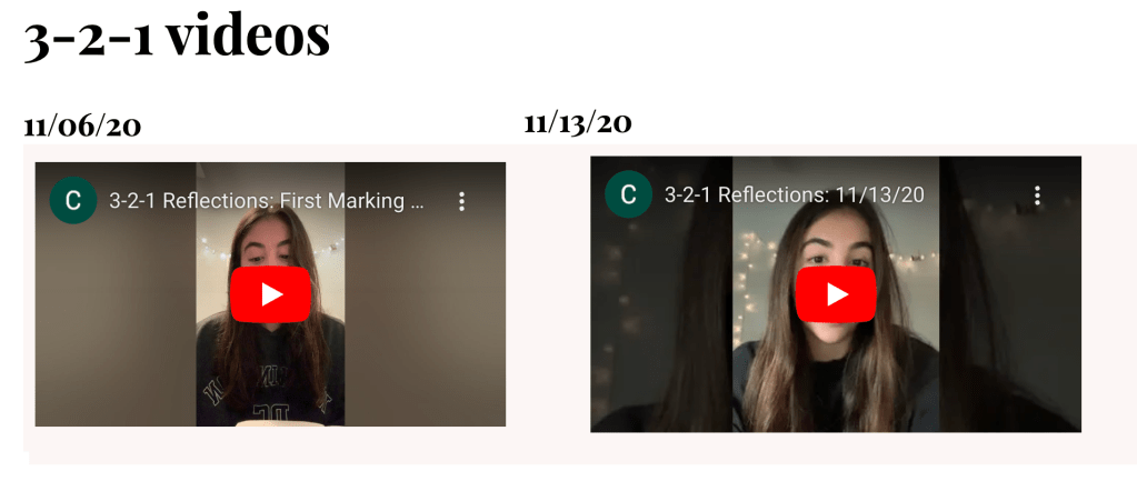 So I moved to “A-Teams,” or accountability teams during the pandemic and our online work. Each week, on a Monday, before moving into their independent or team work, students met in Zoom breakout rooms of rotating “accountability teams” to discuss their progress and plans for the week.