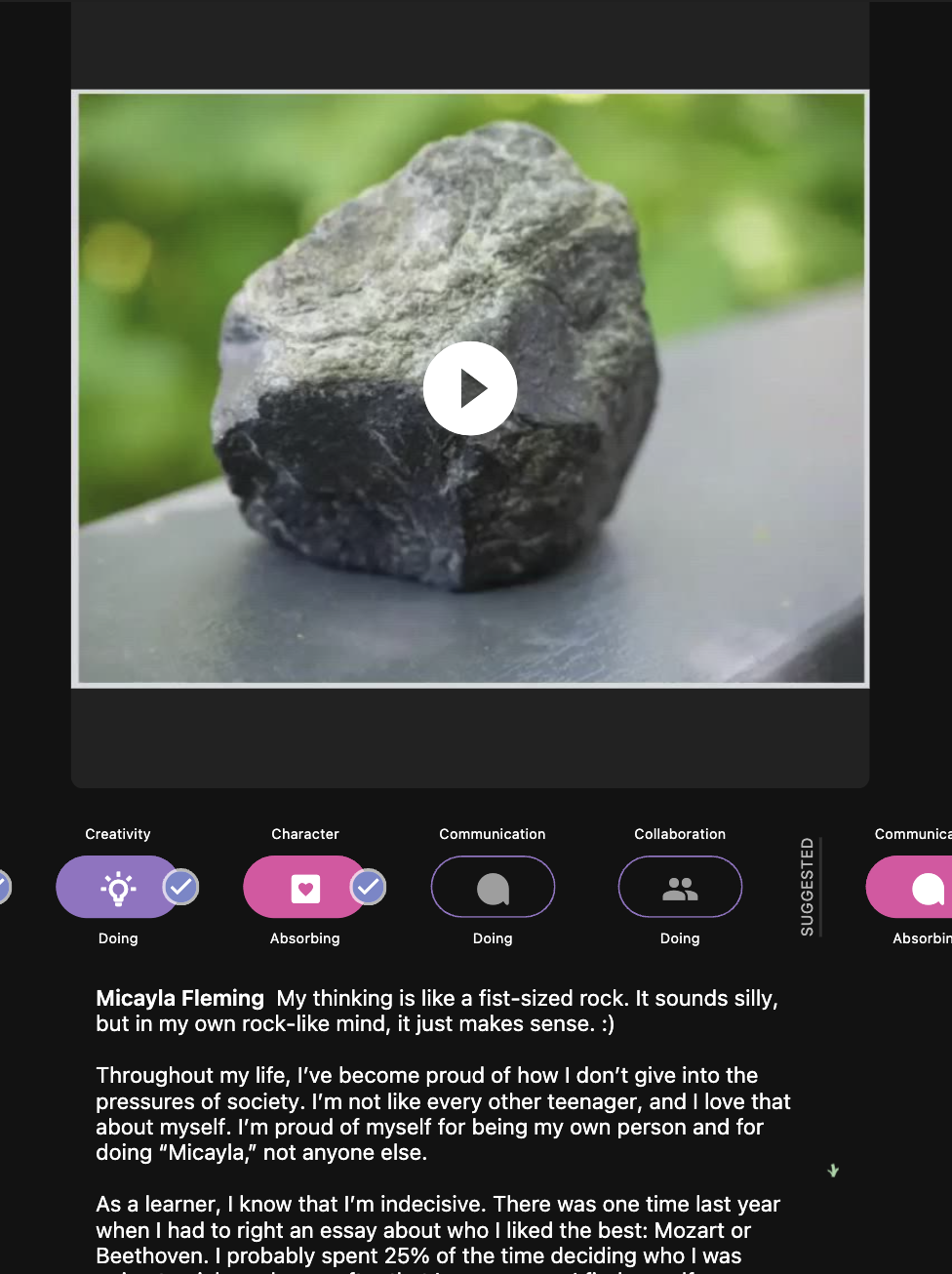 What I needed was something that would provide students with the ability to create a habit of capturing their learning “in the moment,” which added little burden or interruption to the learning process, and which would, at the same time, create a learning artifact of insight and meaning. For it is, after all, the “doing,” the manifestation in the real world of the abstractions of thought and idea, that makes a “dent in the universe.”