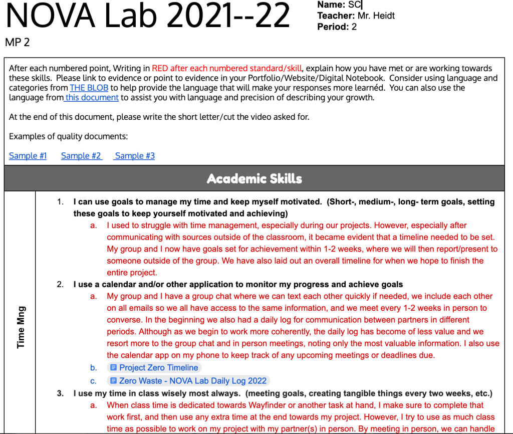 My problem was not a new one. Any teacher who has sought to develop classrooms around the type of entrepreneurial, open-source learning powered by innovative thinking has faced the grading conundrum. (I would argue that any teacher of any classroom is faced with a grading conundrum…but that is a topic for another blog, and for others who are far more eloquent and practiced in going gradeless than I am.) The universality of this struggle with grades was part of why I had formed an extensive professional learning network on Twitter and Linkedin. I knew others were working in this area, but it wasn’t until my friend and fellow teacher in the field of entrepreneurial mindsets, Christian Talbot, contacted me on Twitter that I found what I was looking for.