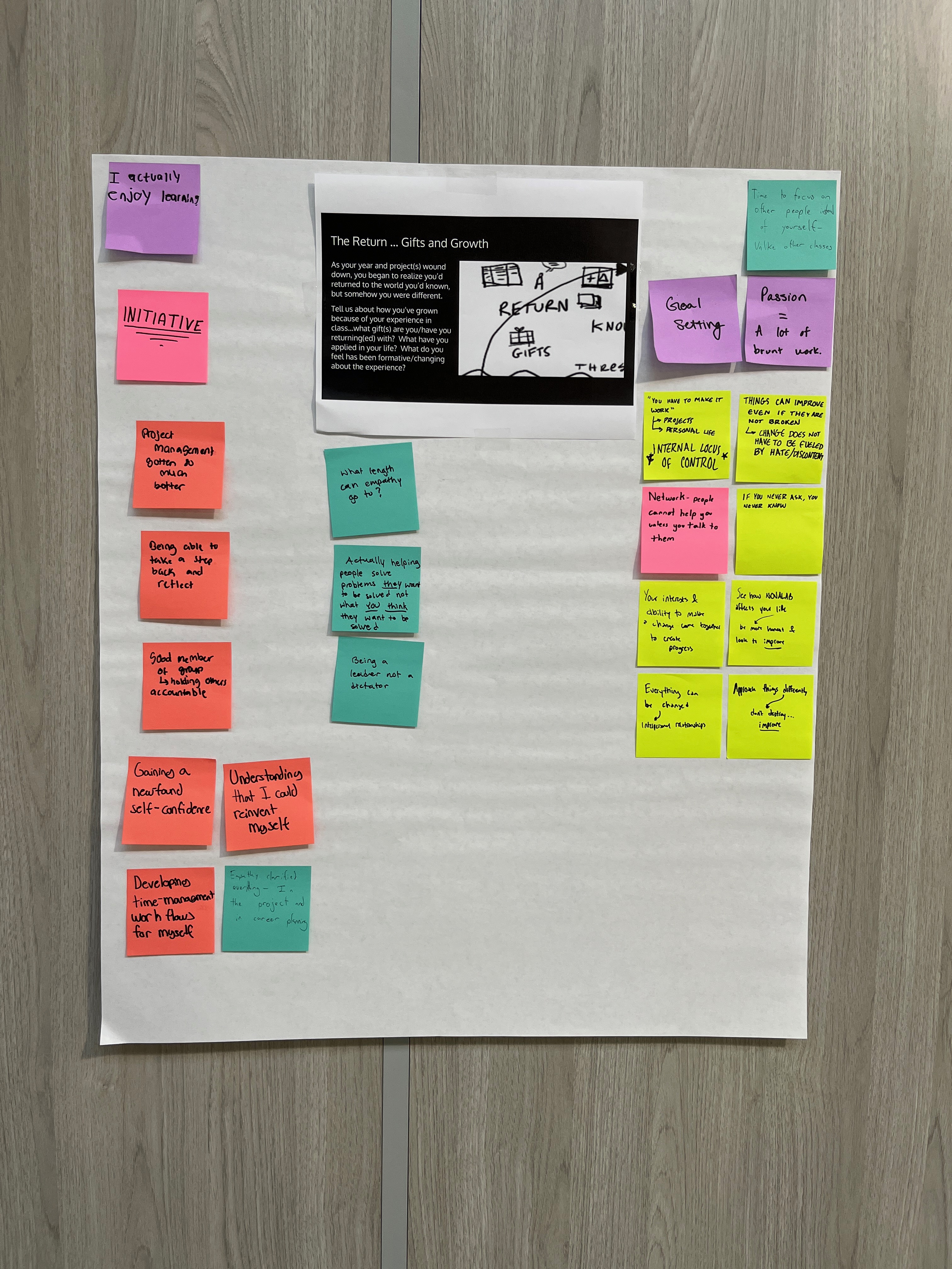 That “something” was revealed in the final two posters above: “The Special Power” and “The Gift” they took with them and shared to others. From a deeper understanding of empathy and why it is so important, to a better practice of leadership, or a better practice of project management, these gifts/powers were not simply discrete bits of information. They were skills and dispositions, things that took time to develop and which were lasting…transformative even. But even more, it was the recognition that the experiential nature of the class had allowed them to develop these skills and to transfer them to their lives and current work.