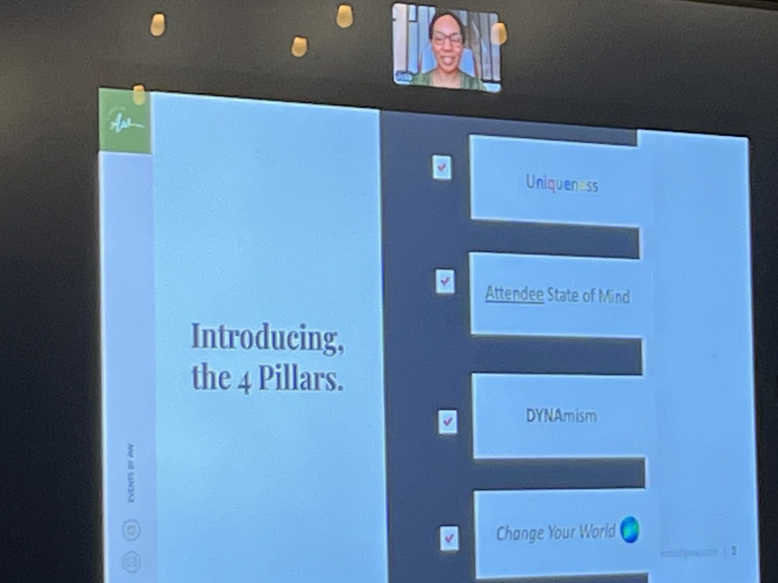 This year Aysia’s presentation focused on event planning and how to take a project, whether it be an event like a fundraiser or informational meeting, and prepare for four key aspects of it in such a way as to make one to remember. Aysia used four key pillars to outline this work (Uniqueness, Attendee State of Mind, DYNAmism, and Change Your World–See image below)