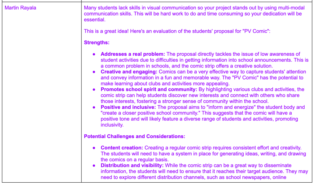Within a week, all students received feedback from at least two people and used the feedback to help set direction and goals for the future of their projects.